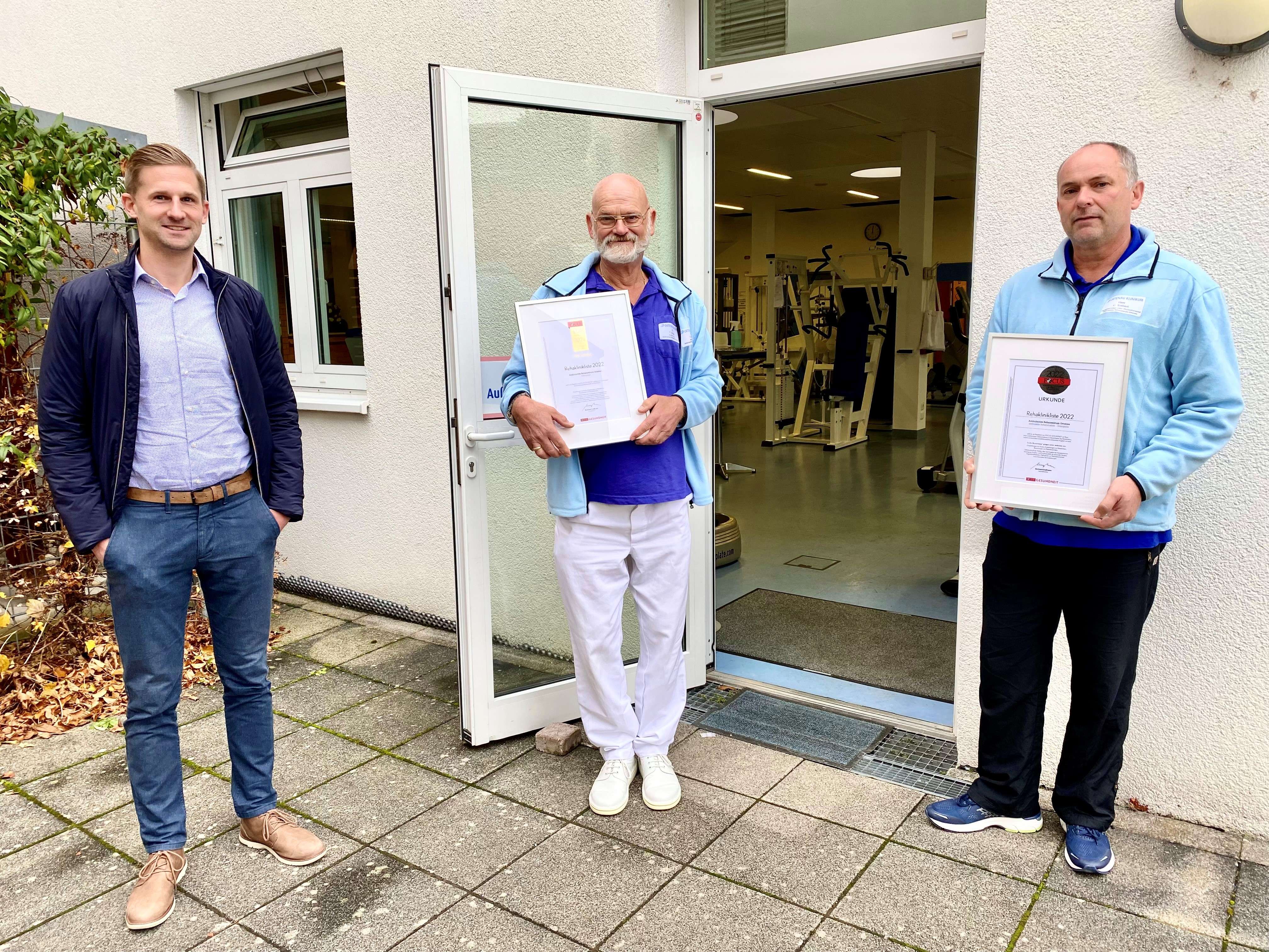 Das Ambulante Rehazentrum Ortenau erhält für das Jahr 2022 erstmals eine Auszeichnung vom Ratgebermagazin Focus-Gesundheit. Für das vom Ortenau Klinikum Offenburg-Kehl am Ebertplatz in Offenburg betriebene Ambulante Rehazentrum Ortenau sprach das Magazin eine "Besondere Empfehlung für ambulante Rehabilitation“ aus. Aufgrund seiner hohen Qualitätsstandards wird das Zentrum darüber hinaus als „Top-Rehaklinik 2022“ eingestuft. Beide Auszeichnungen veröffentlichte Focus-Gesundheit kürzlich mit der Rehakliniken-Liste in seiner Sonderausgabe „Reha & Kur“. „Über diese besondere Würdigung in unserem 25. Jubiläumsjahr freuen wir uns sehr.“, so Lukas Lehmann, Kaufmännischer Leiter des Ambulanten Rehazentrums Ortenau.
