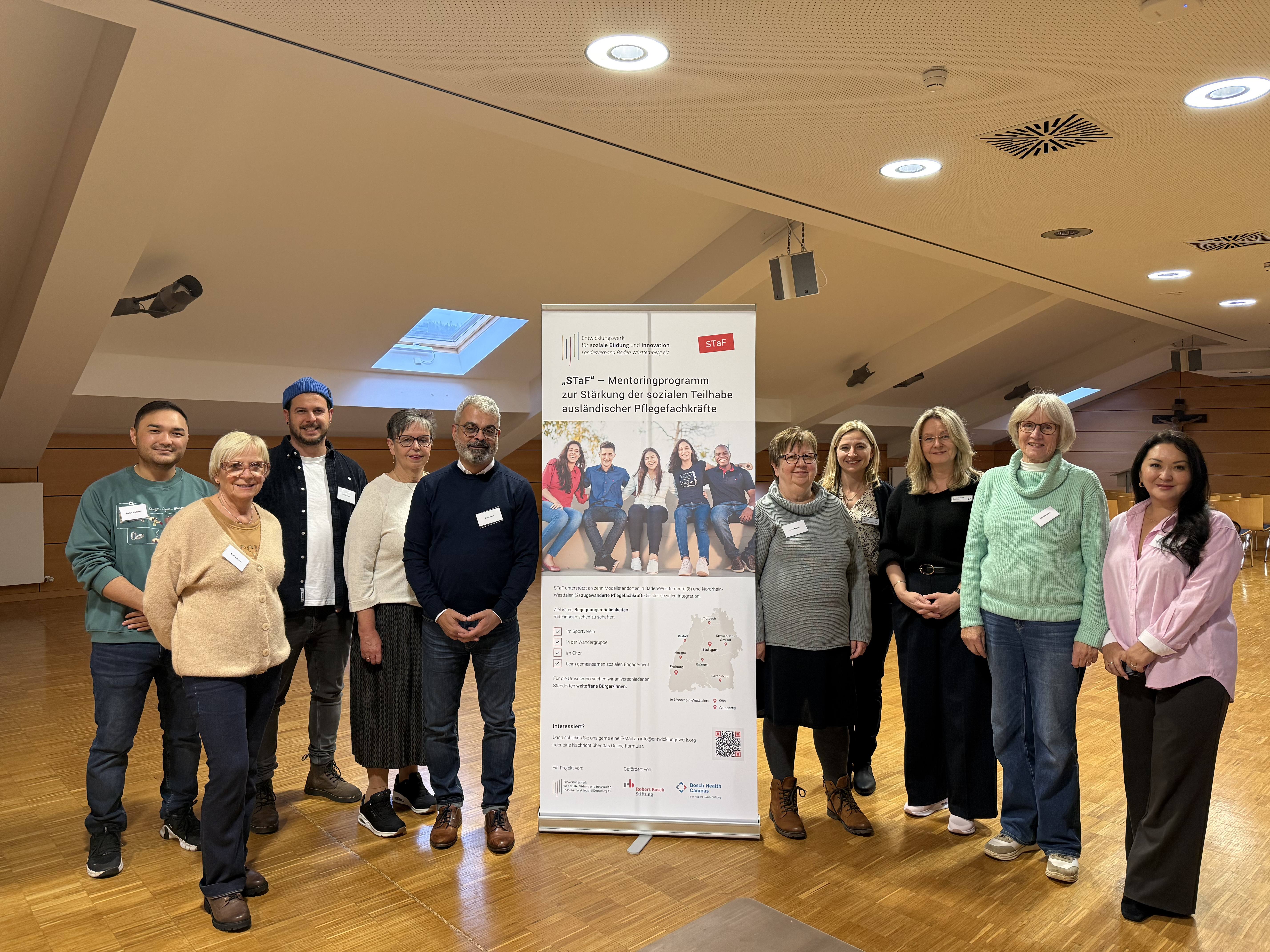 Das Mentoring-Programm STaF begleitet internationale Pflegekräfte auf ihrem Weg in Deutschland und fördert ihre berufliche und soziale Integration. Die ehrenamtlichen Mentoren spielen dabei eine zentrale Rolle, indem sie den zugewanderten Pflegekräften bei der Eingewöhnung helfen, Sprachbarrieren überwinden und wertvolle Kontakte in der Region knüpfen. Diese persönlichen Begegnungen erleichtern den neuen Pflegekräften den Alltag und tragen dazu bei, dass sie sich langfristig in Deutschland und in der Pflegebranche integrieren können.